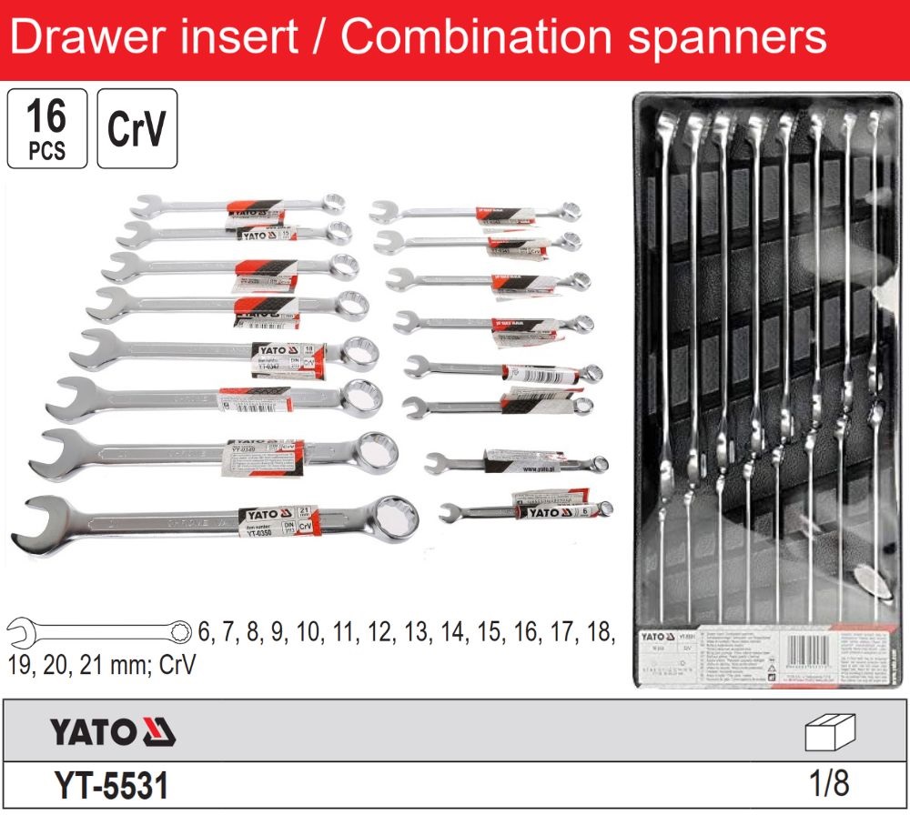 플라스틱 트레이 렌치 세트 6-21mm 16피스 Yato YT-5531을 소유할 기회를 놓치지 마십시오. 전문 기계 공장에 적합한 완벽한 선택입니다. 지금 주문하여 Yato Tools의 폴란드 품질을 경험하십시오!