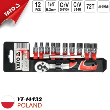 Are you looking for a multi-purpose wrench set, convenient for car repair work, mechanical workshops, or simply basic household repair needs? Yato YT-14432 1/4" 4-13mm wrench set with 12-piece extension bar is the perfect choice for you!