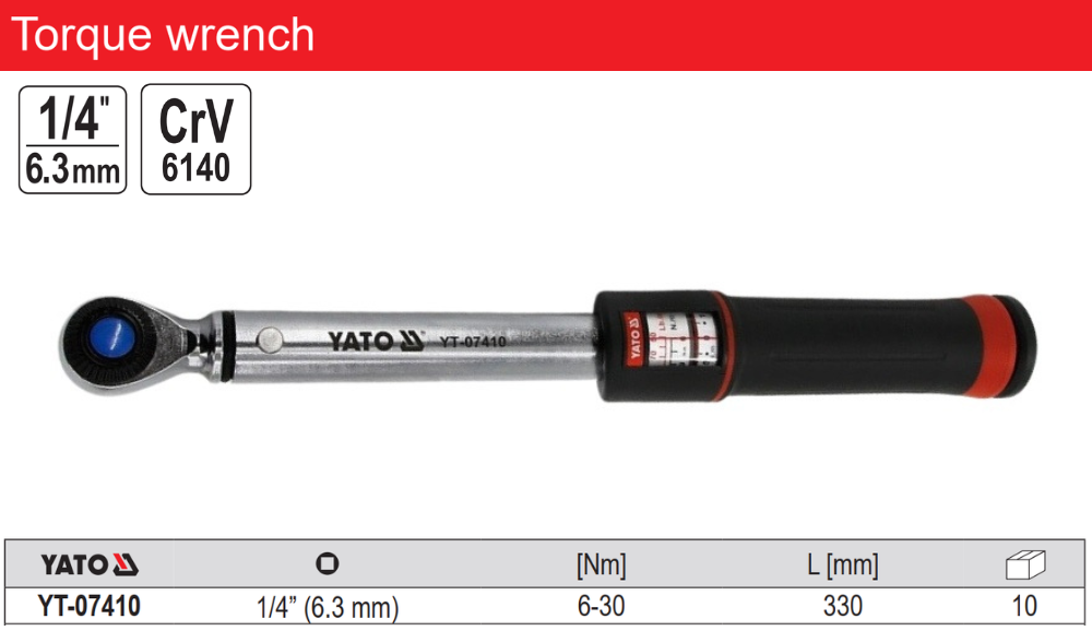 Technical specifications of Yato YT-07410 6-30Nm torque wrench: