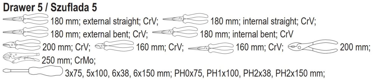 Yato YT-55302T5 17件钳子和螺丝刀托盘的技术规格