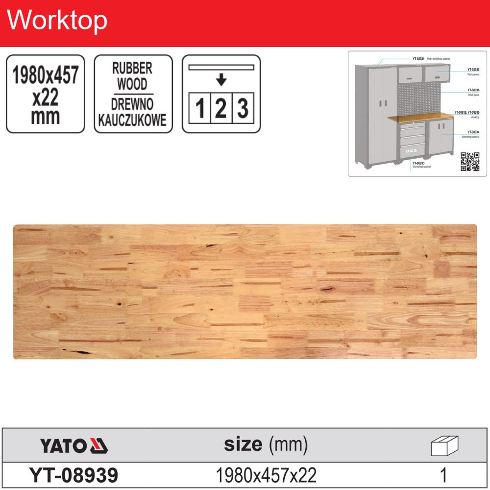 1980x457x22mm 고무나무 작업대 상판 Yato YT-08939 - 폴란드 1980x457x22mm 고무나무 작업대 상판 Yato YT-08939 - 폴란드