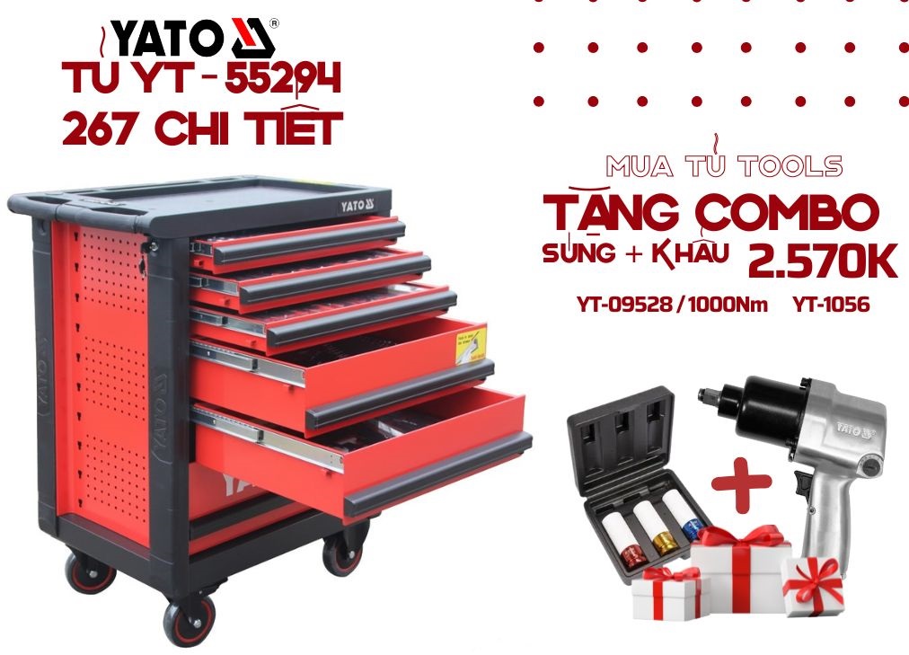 Audi car repair tool cabinet 267 parts Yato YT-55294 is the perfect choice for professional repair workshops, helping you optimize the repair process, improve work efficiency and save costs. Don 't miss the opportunity to own this product now! Contact us immediately for detailed advice and orders: