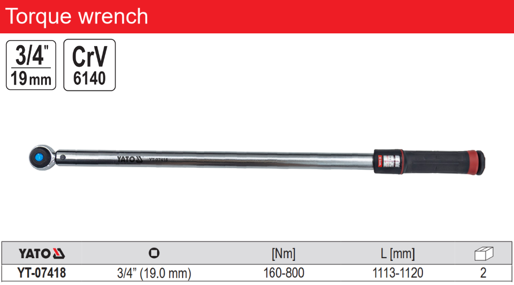 Key Features of 3/4" Torque Wrench Yato YT-07418