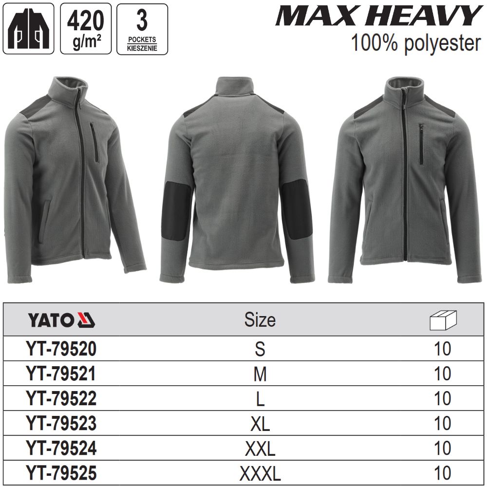 Thông số kỹ thuật của Áo khoác nỉ dày màu xám size từ: S - 3XL Yato YT-79520: