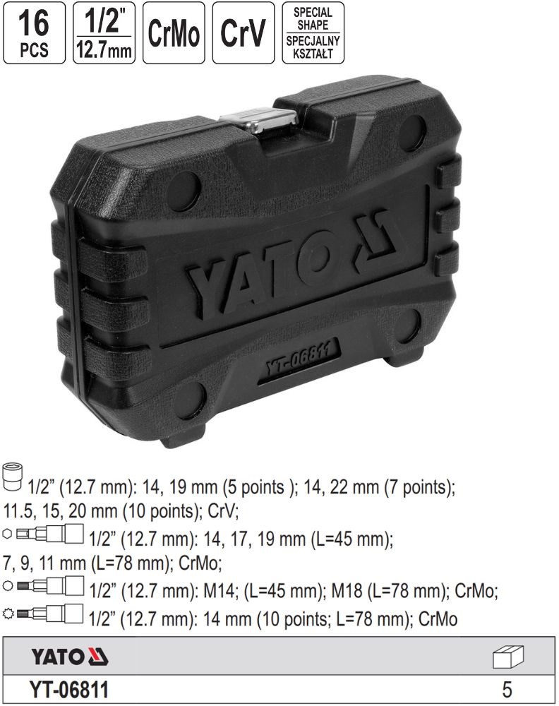 Thông số kỹ thuật của Bộ 16 đầu khẩu đặc biệt tháo ốc phanh xe Châu Âu Yato YT-06811: