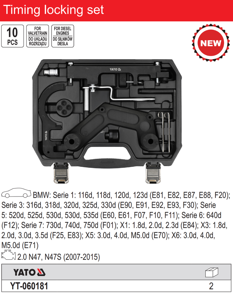 Thông số kỹ thuật: Bộ dụng cụ căn chỉnh thời điểm động cơ BMW N47/S Diesel Yato YT-060181