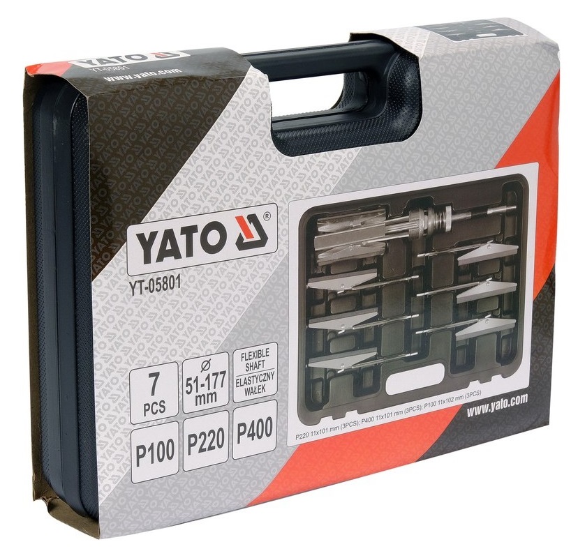 Technical specifications of the Yato YT-05801 cylinder polishing tool kit Φ51-177 P100/220/400 (7 pieces):