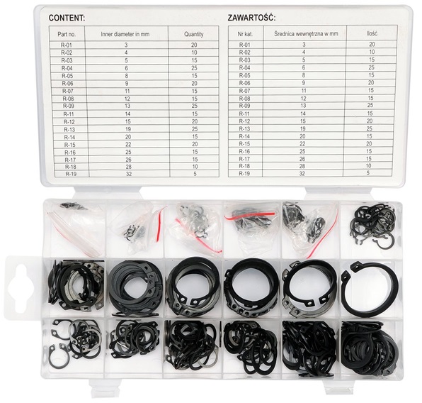 300 vòng chặn Seger với 18 kích thước khác nhau, đáp ứng mọi nhu cầu sử dụng.