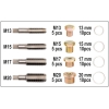 Bộ bao gồm: * 4 mũi taro (M13, M15, M17, M20) * 20 nút xả dầu (M13 X5, M15 X5, M17 X5, M20 X5) * 40 vòng đệm (13 mm x10, 15 mm x10, 17 mm x10, 20 mm x10)