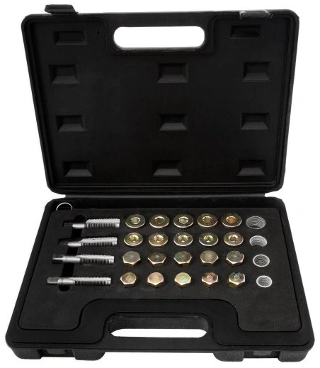 Ứng dụng của bộ taro ren và ốc xả dầu kèm ren cấy sửa ốc rốn dầu 114 chi tiết Yato YT-1757: