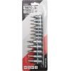 Đa dạng kích thước: Bao gồm 12 đầu tuýp với kích thước từ 1/4" đến 3/8", đáp ứng mọi nhu cầu vặn tháo bu lông, vít đầu hoa thị thông dụng.