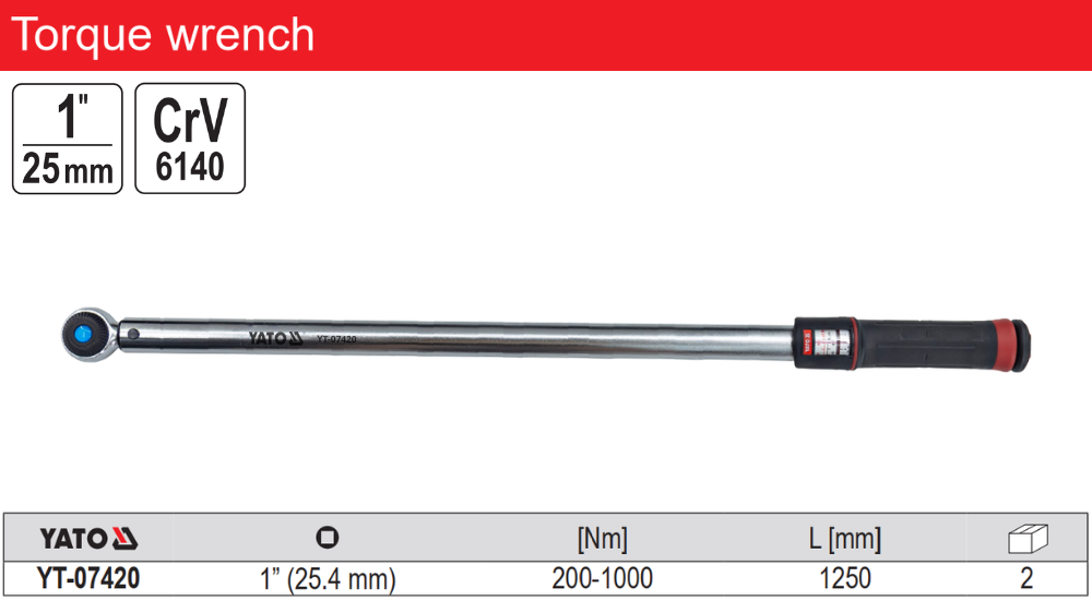 Cần Siết Cân Lực 1" 200–1000Nm 1250mm Yato YT-07420 – Giải Pháp Siết Lực Chính Xác Cho Thiết Bị Hạng Nặng