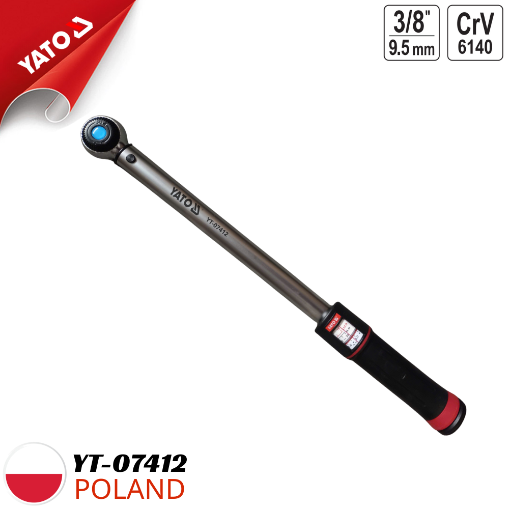 Cần Siết Cân Lực 3/8" 10–100Nm 405mm Yato YT-07412 – Siết Chuẩn Lực, Bảo Vệ Tuyệt Đối Mối Ghép Cơ Khí