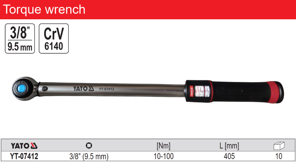 Thông số kỹ thuật của Cần siết cân lực 3/8" 10–100Nm 405mm Yato YT-07412: