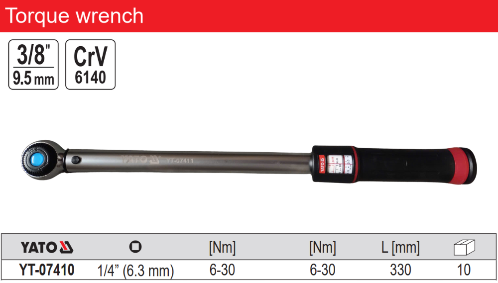 Thông số kỹ thuật của Cần Siết Cân Lực 3/8" 10–60Nm 430mm Yato YT-07411: