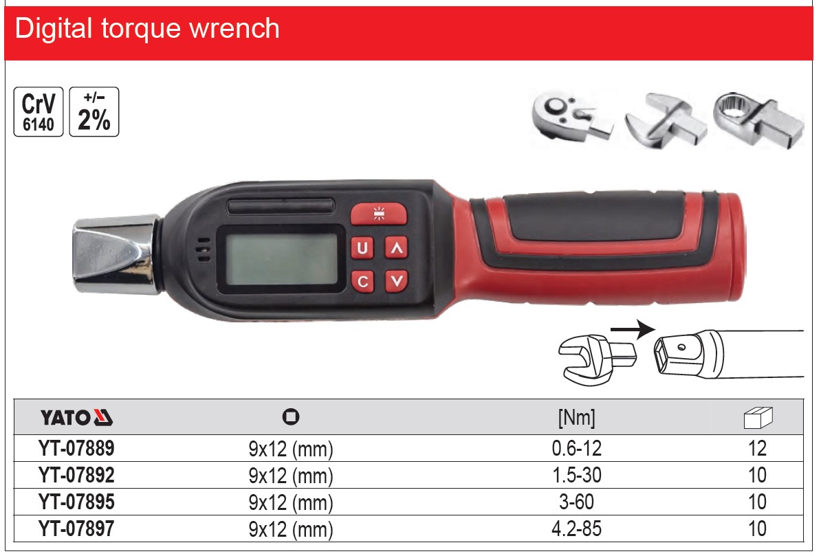 Thông số kỹ thuật của cờ lê cân lực điện tử đầu rời 0.6-12Nm Yato YT-07889 Ba lan
