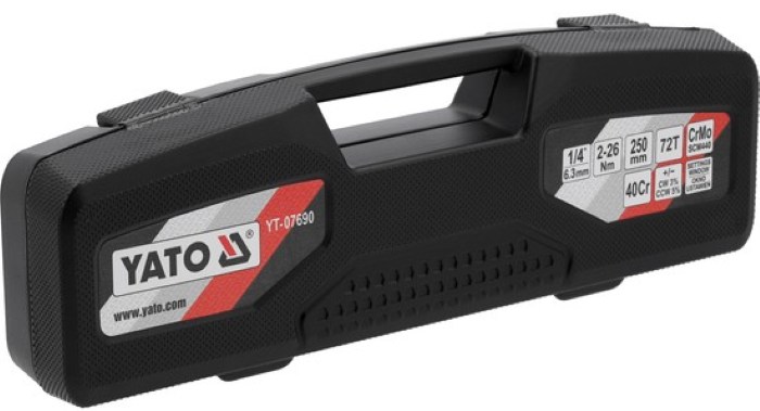 Cờ lê lực hiển thị số 1/4" 2–26Nm YATO YT-07690 là dụng cụ siết lực chính xác cao, được thiết kế cho các công việc yêu cầu độ chuẩn mô-men tuyệt đối, đặc biệt trong sửa chữa cơ khí chính xác, xe máy, xe đạp cao cấp, thiết bị điện – điện tử và phòng bảo trì chuyên nghiệp.