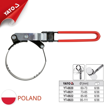 Đai tháo lọc dầu 60-73mm đến 95-111mm Yato là dụng cụ không thể thiếu cho những ai thường xuyên thay thế lọc dầu cho xe cộ và bảo dưỡng động cơ. Sản phẩm giúp việc thay thế lọc dầu trở nên dễ dàng, nhanh chóng, an toàn và hiệu quả, tiết kiệm thời gian và công sức cho người sử dụng. Đừng bỏ lỡ cơ hội sở hữu sản phẩm tuyệt vời này! Hãy đặt mua ngay Đai tháo lọc dầu Yato để trải nghiệm sự tiện lợi và hiệu quả trong việc thay thế lọc dầu! Liên hệ ngay để được tư vấn và đặt hàng: