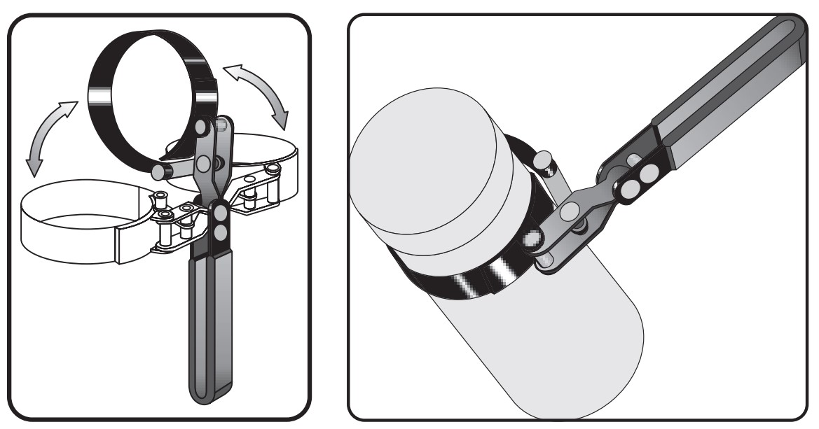 Siết chặt vòng đai: Vòng đai được thiết kế với các răng cưa nhỏ, khi siết chặt bằng tay cầm, các răng cưa này sẽ bám chặt vào thân lọc dầu, tạo ra lực ma sát lớn.