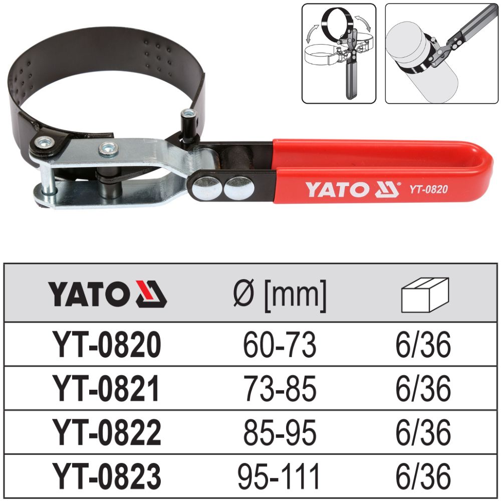 Thông số kỹ thuật của Đai tháo lọc dầu 60-73mm đến 95-111mm Yato: