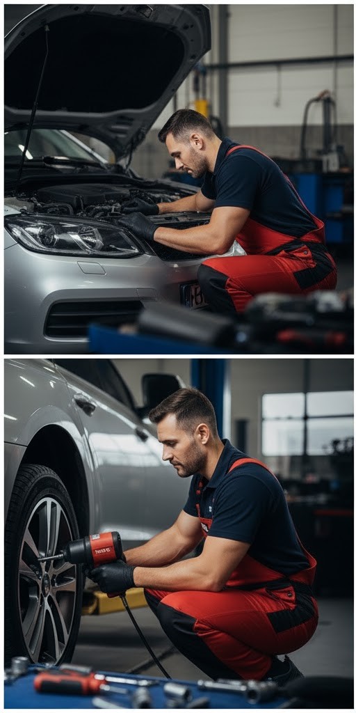 Thiết bị sửa chữa ô tô và xe máy: Bộ tháo lắp, thiết bị chẩn đoán, máy nén khí.
