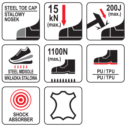 • Toe Cap: Steel toe (EN ISO 20345 standard)