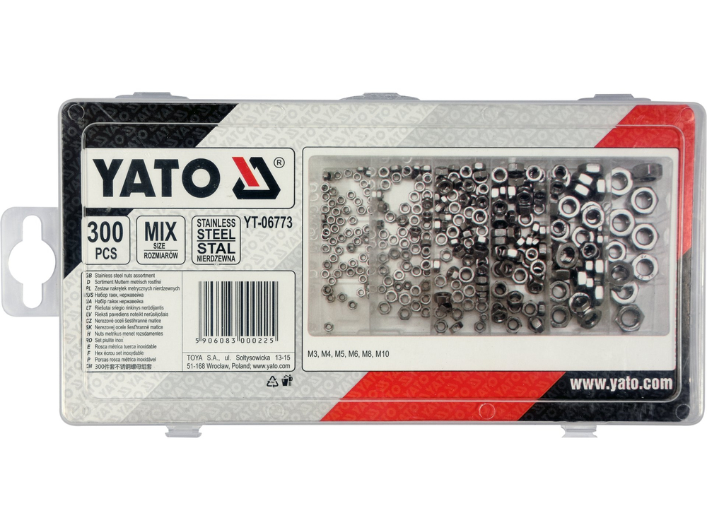 Bộ 300 đai ốc inox đủ size Yato YT-06773 - Giải pháp hoàn hảo cho mọi nhu cầu kết nối!