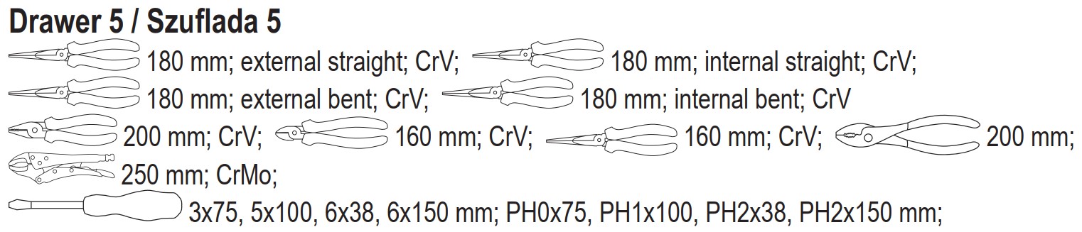 Thông số kỹ thuật của Khay Bộ Kềm Và Tua Vít 17 Chi Tiết Yato YT-55302T5
