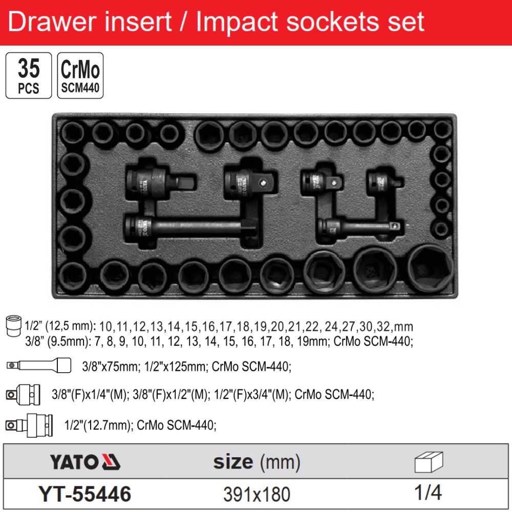 Thông số kỹ thuật của Khay bộ khẩu vặn bulông tổng hợp 35 chi tiết Yato YT-55446:
