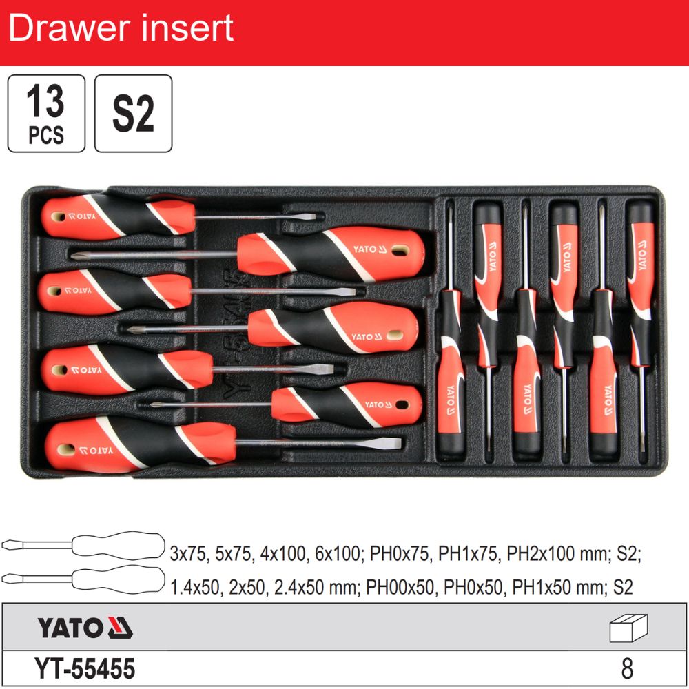 Khay Bộ Tuốc Nơ Vít 2 Cạnh và 4 Cạnh 13 Chi Tiết Yato YT-55455 - Giải pháp toàn diện cho thợ kỹ thuật chuyên nghiệp!