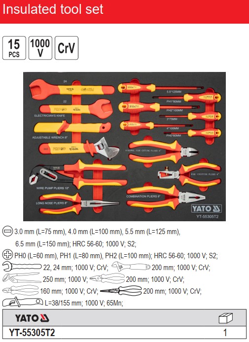 Thông số kỹ thuật của Khay Dụng Cụ Sửa Chữa Cách Điện 15 Chi Tiết Yato YT-55305T2