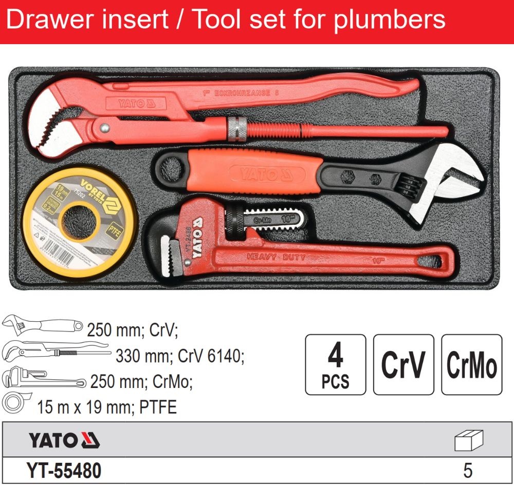 Mua ngay khay nhựa bộ kìm nước 4 chi tiết Yato YT-55480 để công việc sửa chữa ống nước của bạn trở nên dễ dàng, chuyên nghiệp và tiết kiệm hơn bao giờ hết!