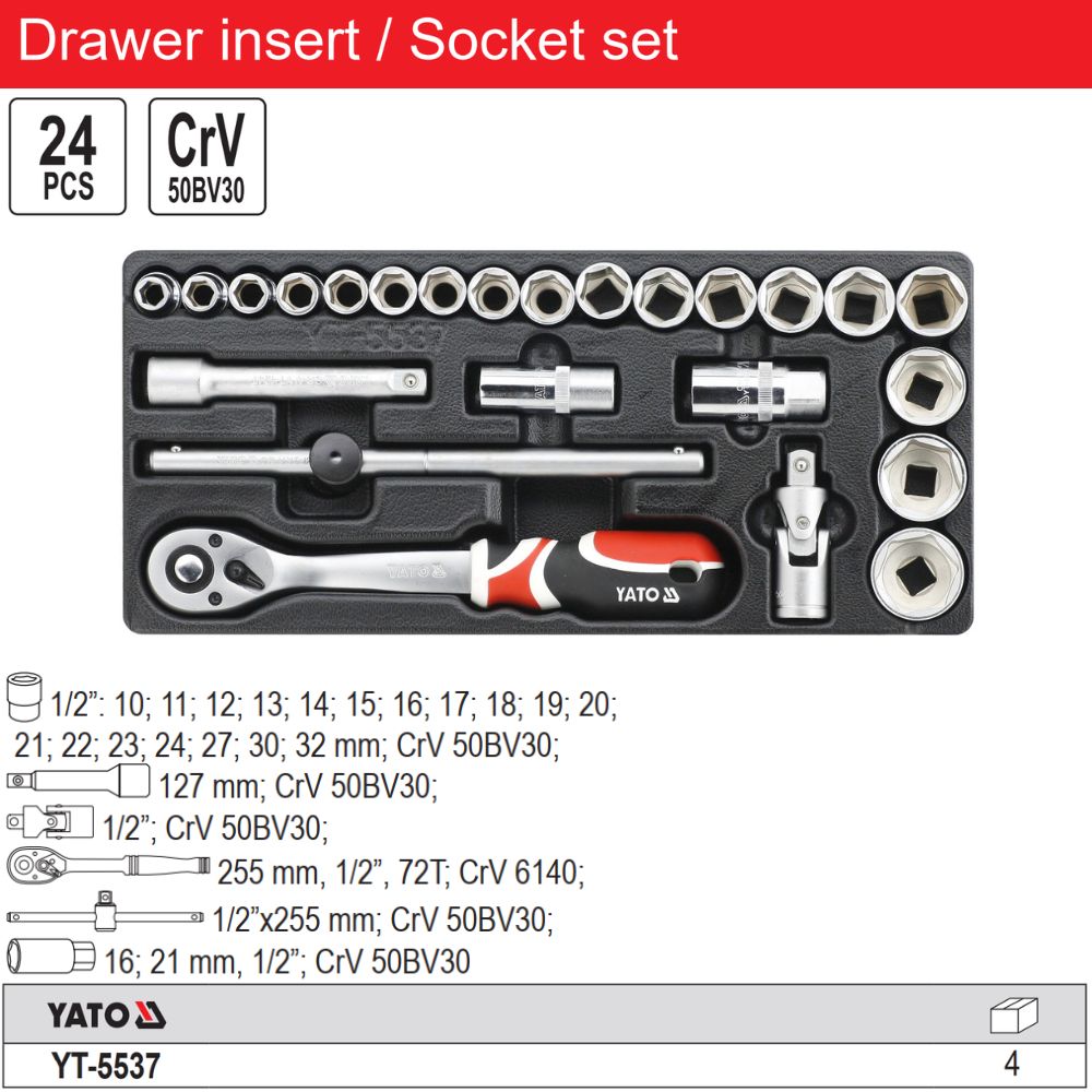 Khay nhựa Bộ tuýp tay vặn 1/2'' 24 chi tiết Yato YT-5537 - Ba Lan