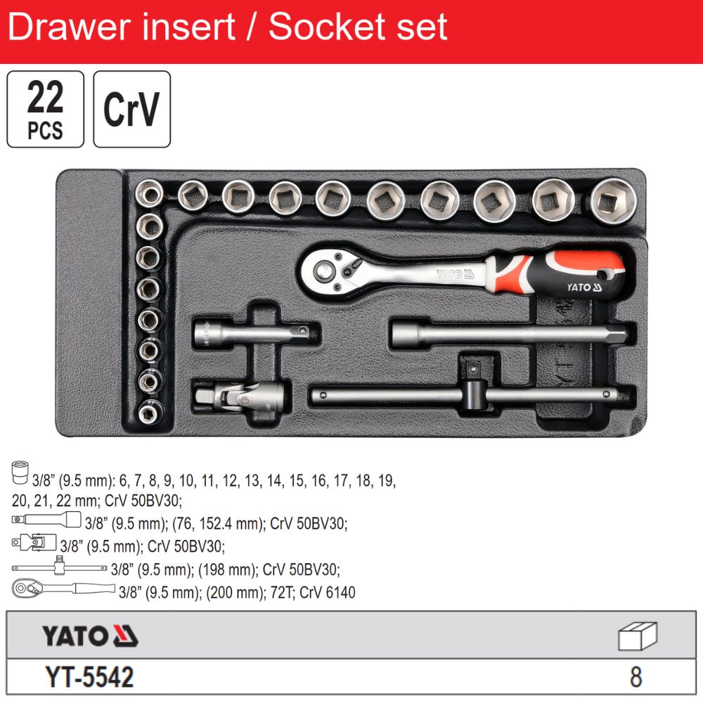 Thông số kỹ thuật của Khay nhựa đầu tuýp 3/8" chi tiết Yato YT-5542: