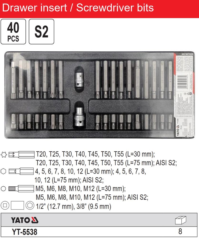 Khay Nhựa Mũi Vít Đa Năng 3/8" 1/2" 40 Chi Tiết Yato YT-5538: Giải Pháp Tối Ưu Cho Người Thợ Muốn Làm Việc Hiệu Quả Hơn