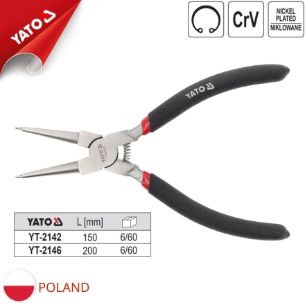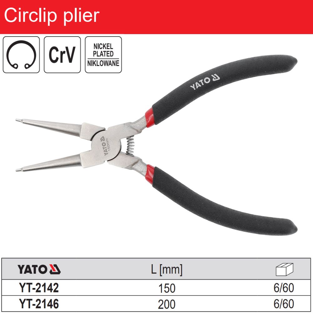 Thông số kỹ thuật của Kìm phe trong thẳng 150mm Yato YT-2142: