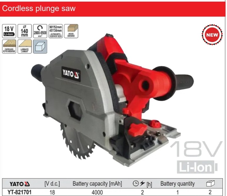 Thông Số Kỹ Thuật Máy Cưa Ray Dùng Pin 18V 140MM Yato YT-821701