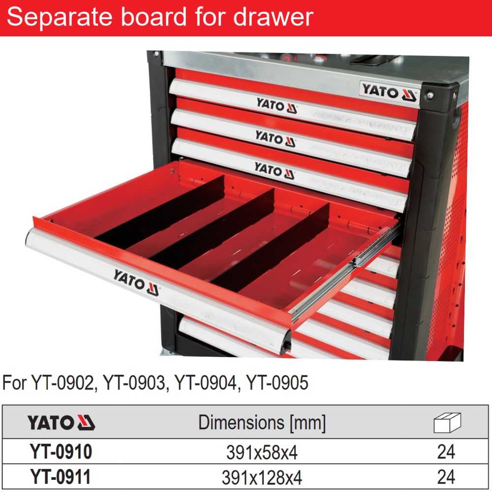 Designed to be compatible with Yato tool cabinets YT-0902, YT-0903, YT-0904, YT-0905, ensuring absolute compatibility.