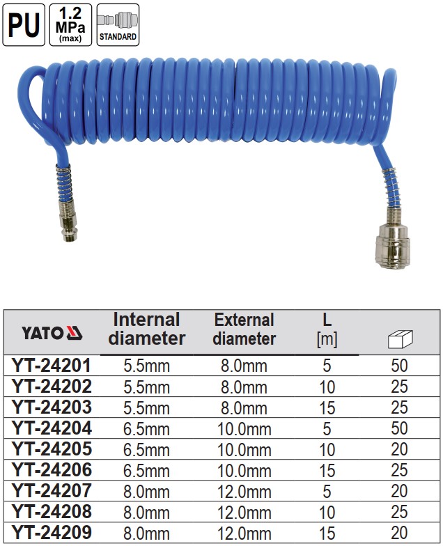 Choose the Yato YT-24201 5m 5.5x8mm Spring Air Hose today to optimize your work efficiency and elevate the professionalism of your workshop!