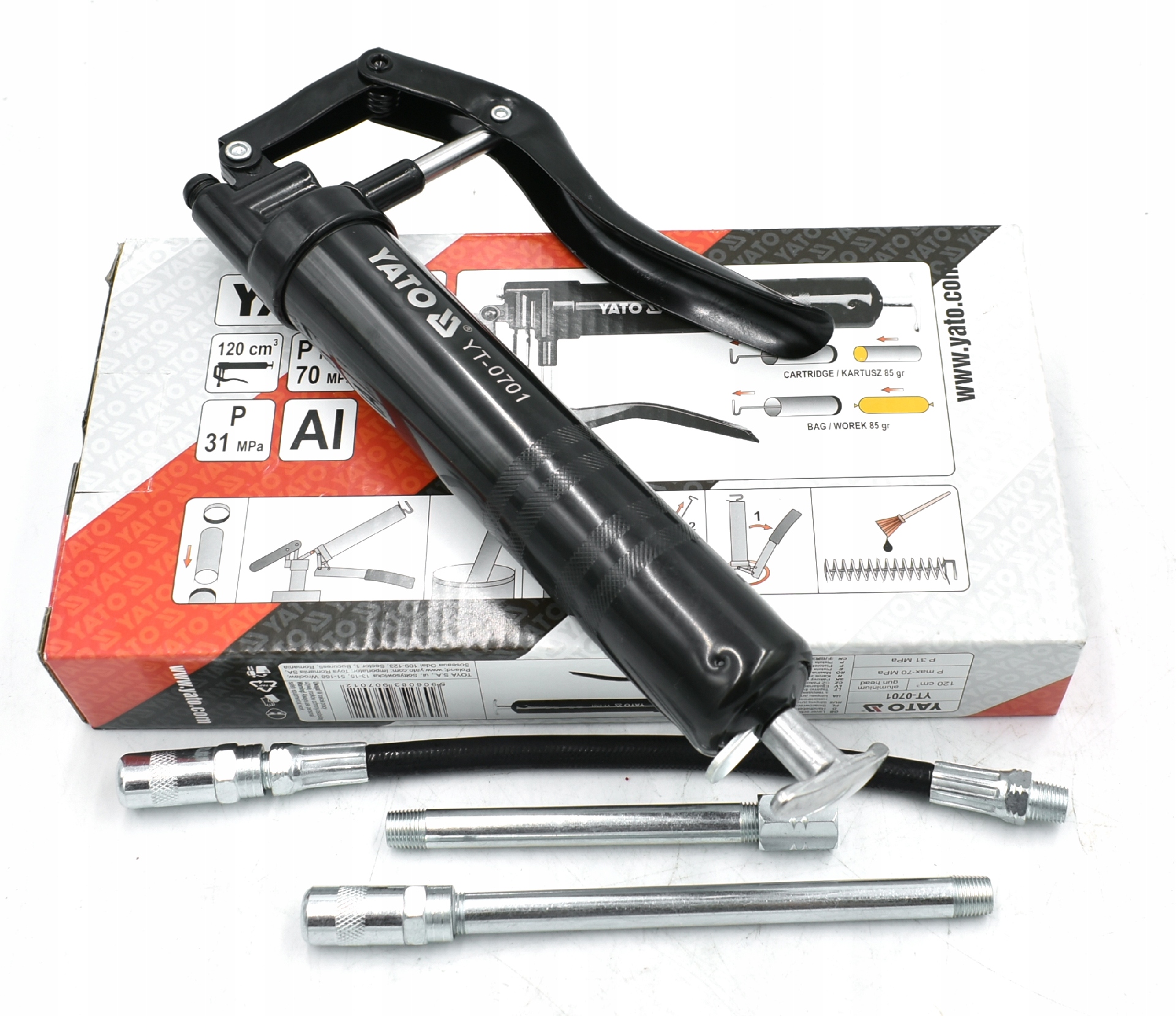 Súng bơm mỡ 120cc 70Mpa Yato YT-0701 - Dụng cụ bôi trơn máy móc hiệu quả