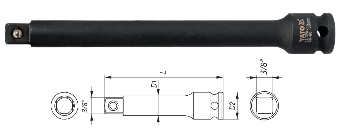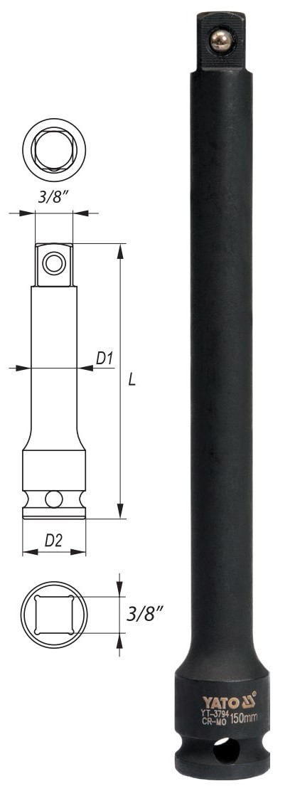 Thông số kỹ thuật của Thanh nối dài đen 75mm 3/8" Yato YT-3793: