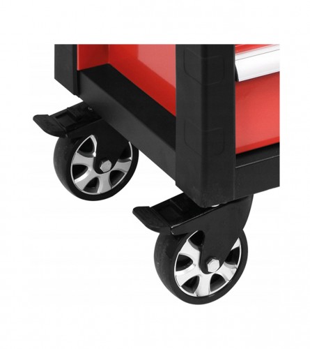 Tủ được thiết kế với hệ thống ngăn kéo trượt bằng bạc đạn cầu, giúp việc mở – đóng nhẹ nhàng, êm ái và không gây tiếng ồn. Khóa trung tâm điều khiển toàn bộ ngăn kéo cùng lúc, đảm bảo an toàn khi cần di chuyển hoặc cất giữ. Các bánh xe chịu lực kết hợp phanh giúp cố định tủ chắc chắn tại vị trí mong muốn.