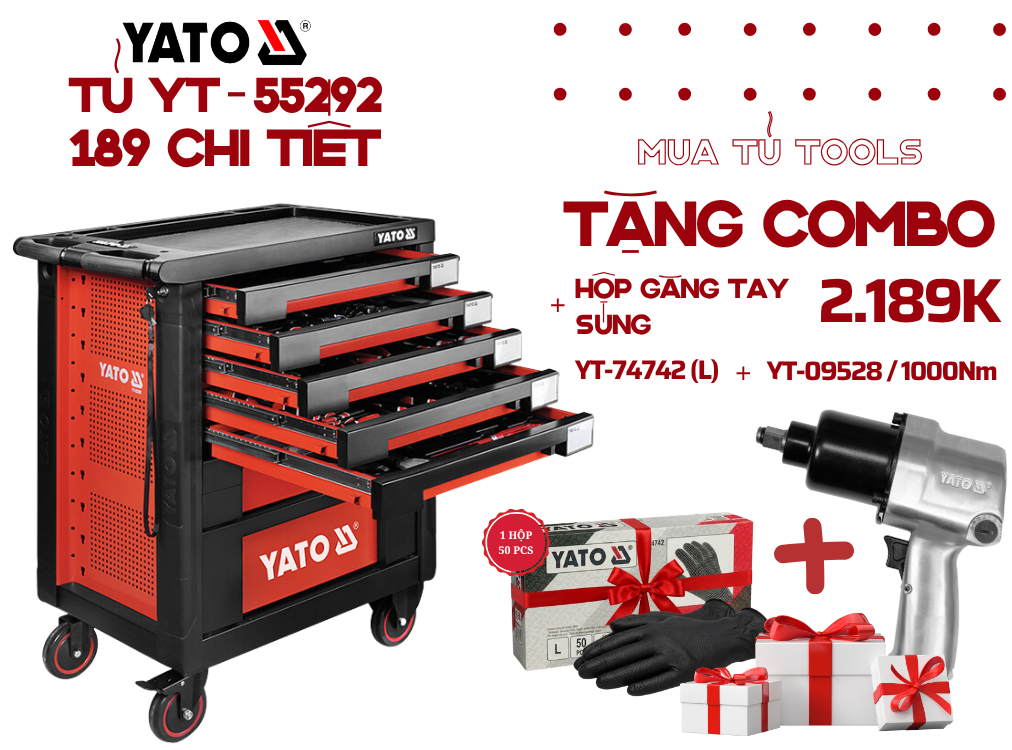 Khi sở hữu Tủ đồ nghề chuyên sửa THÂN VỎ ÔTÔ 189 Món Yato YT-55292, quý khách sẽ được tặng ngay một combo quà tặng cao cấp gồm: