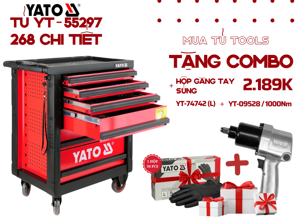 Khi sở hữu Tủ đồ nghề dành cho xe Porsche 268 chi tiết Yato YT-55297, quý khách sẽ được tặng ngay một combo quà tặng cao cấp gồm: