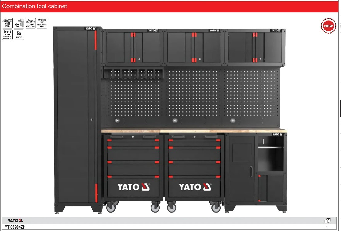 Thông số kỹ thuật của Hệ thống tủ dụng cụ Workshop module ghép Yato YT-08904ZH: