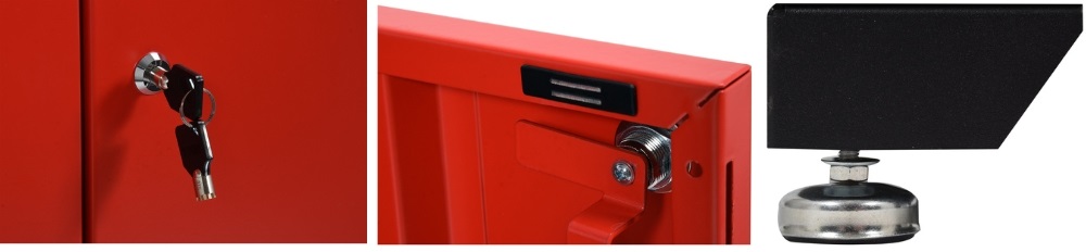 Sử dụng tiện lợi: Tủ có 2 cánh cửa mở rộng cùng chìa khóa an toàn, giúp bạn dễ dàng đóng mở và bảo quản dụng cụ. Chân đế điều chỉnh linh hoạt giúp cân bằng tủ trên mọi địa hình.