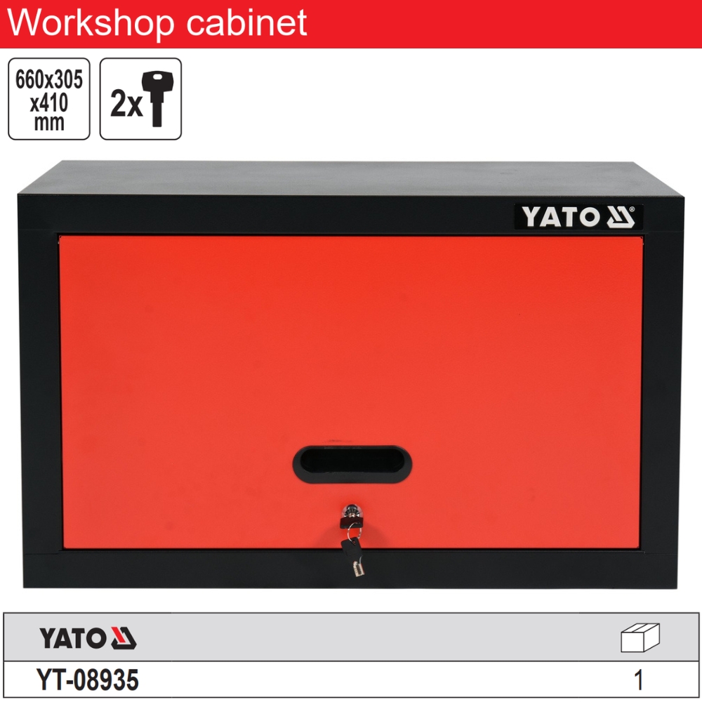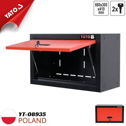 Tủ treo tường Yato YT-08935 là sản phẩm được sản xuất bởi thương hiệu Yato uy tín đến từ Ba Lan, chuyên cung cấp các dụng cụ cầm tay và thiết bị sửa chữa chất lượng cao. Tủ được thiết kế với kích thước 660x305x410mm, phù hợp cho nhiều không gian khác nhau, từ gia đình, xưởng sửa chữa, gara ô tô đến các cửa hàng.