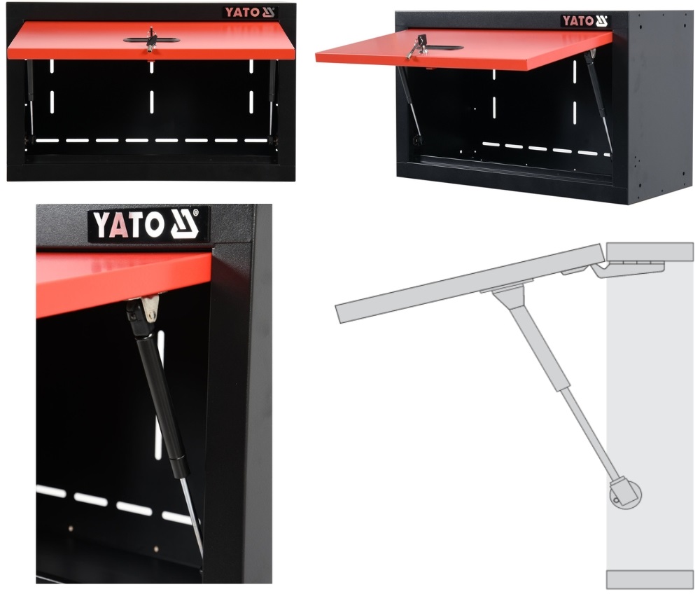 Tủ treo tường Yato YT-08935 có thiết kế nhỏ gọn, tiết kiệm diện tích, thích hợp sử dụng trong các không gian hạn chế như gia đình, xưởng sửa chữa, gara ô tô,...