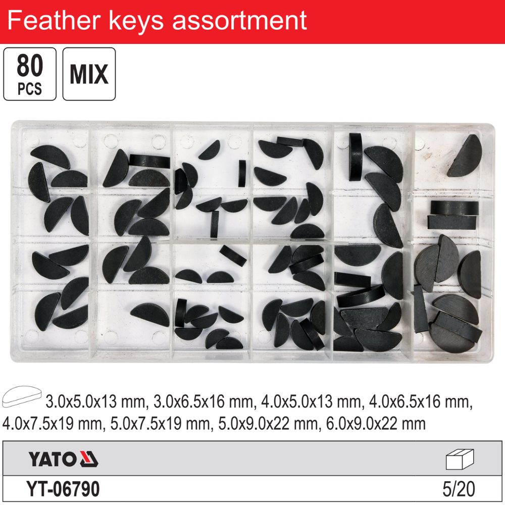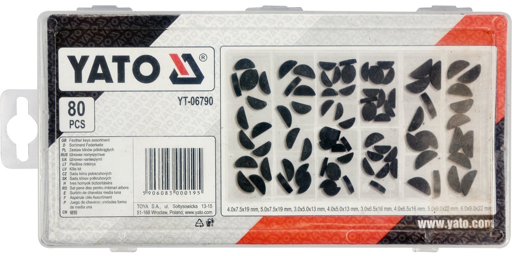 あらゆるサイズの半円形ギャップ インサート 80 個セット Yato YT-06790 の技術仕様: