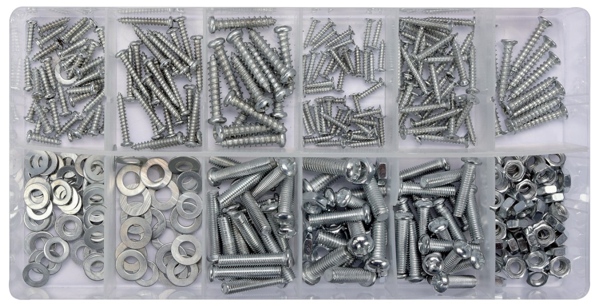 - 347ピースのネジ、ボルト、ワッシャー、ナットが含まれており、ほとんどの使用ニーズに応えます。